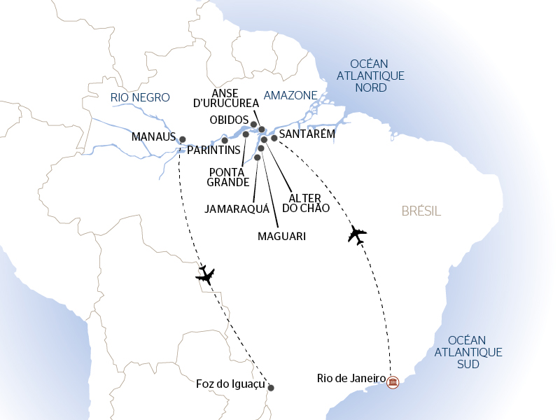 L'Amazonie Douce et le Rio Tapajos - Croisière envoutante et intimiste vers les plus belles plages de l'Amazone - Rio, vibrante et éternelle, et séjour d'exception aux chutes d'Iguaçu (formule port/port)