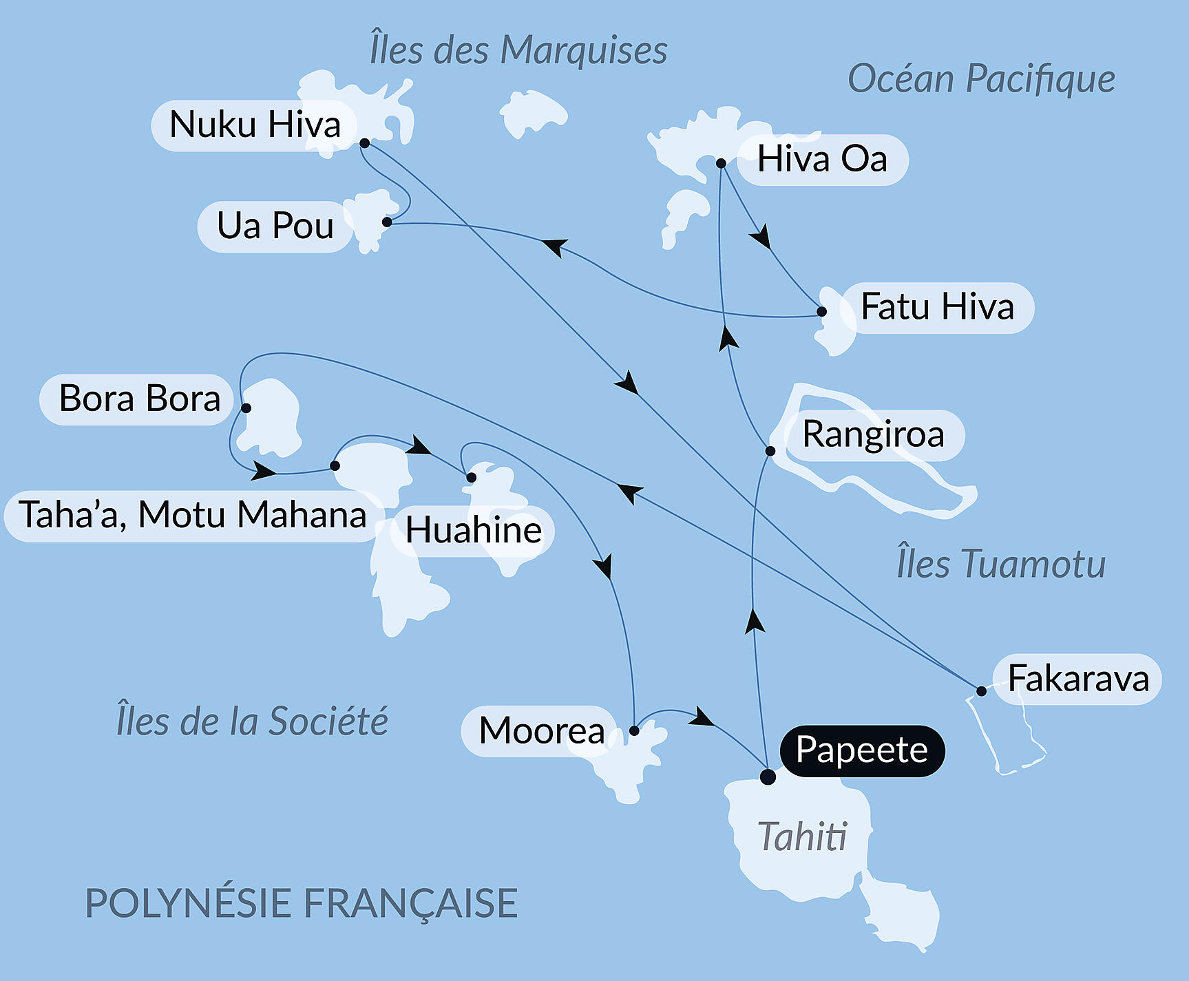 Vous serez ébloui par la beauté incomparable de Huahine, par les eaux turquoise du motu Mahana, notre petit paradis privatisé aux parfums de vanille, par le somptueux lagon de Bora Bora, à la silhouette volcanique reconnaissable entre toutes et par Moorea, avec ses champs dananas à flanc de colline et ses pitons verdoyants dominant l'île.